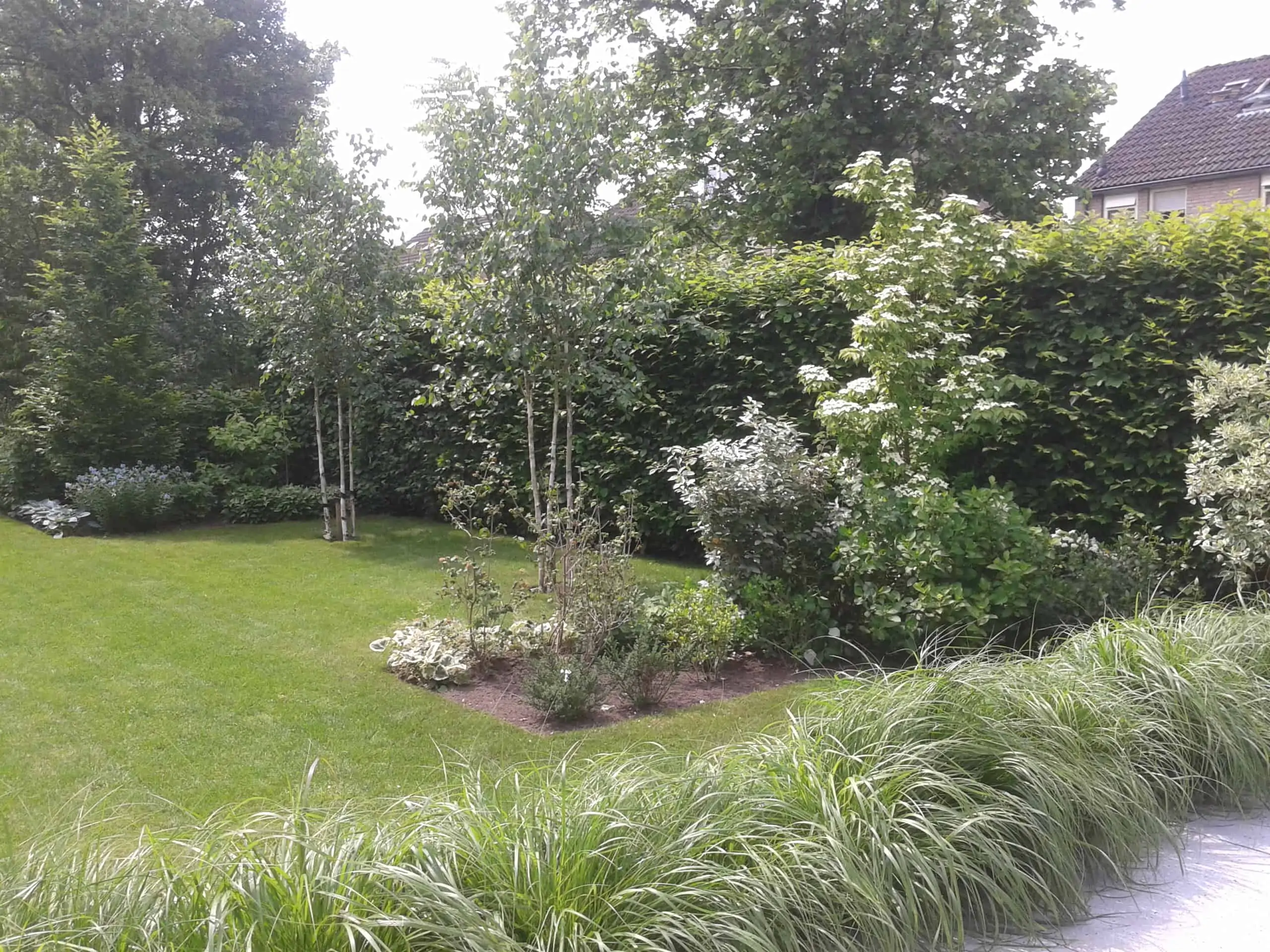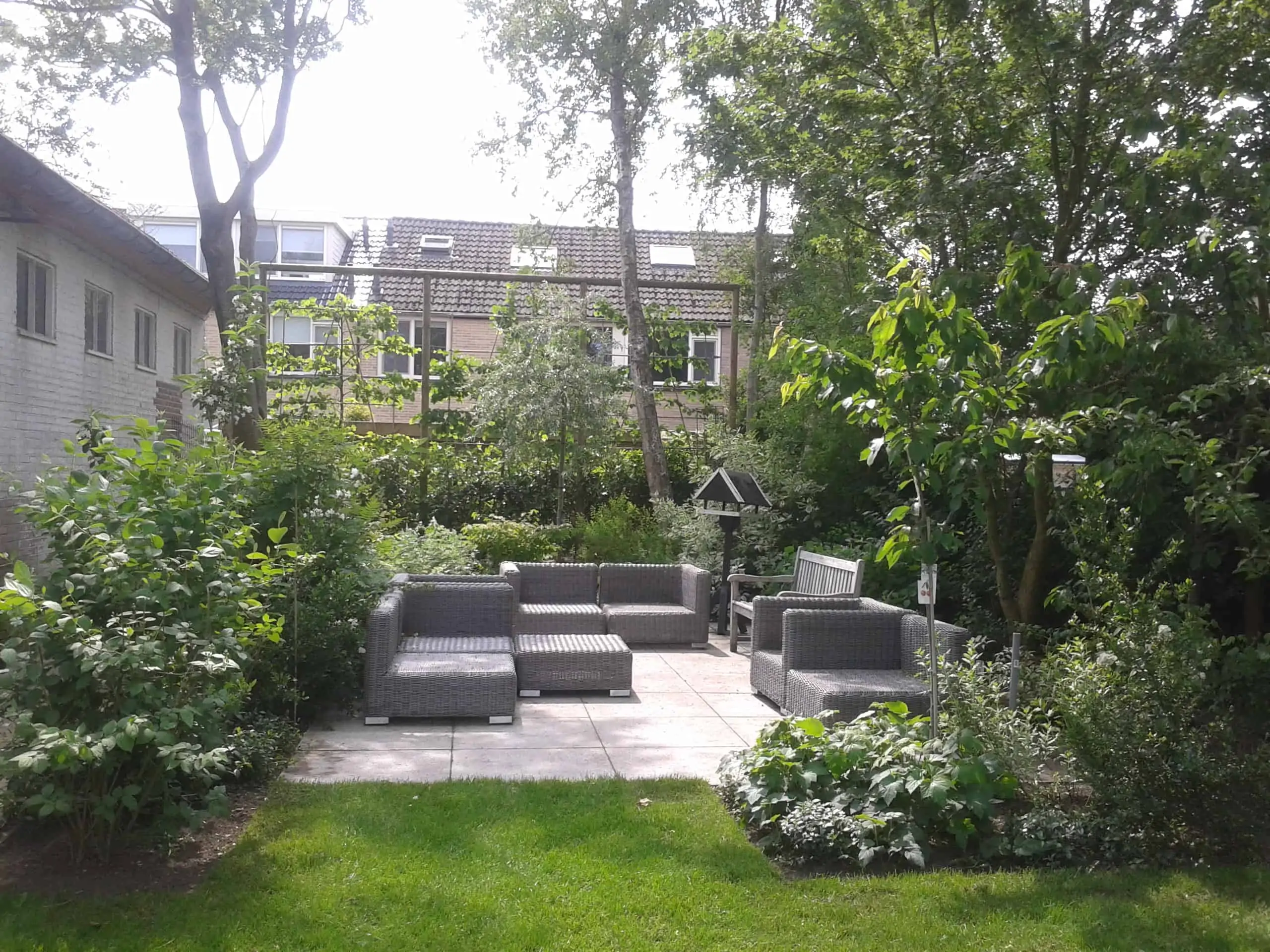 Een tuin waar kinderen naar hartenlust in kunnen spelen, maar waar je als gezin ook goed kan relaxen. Er zijn een speeltoestel, grootgrasveld te vinden en ook verhoogde bloembakken om groente in te telen.